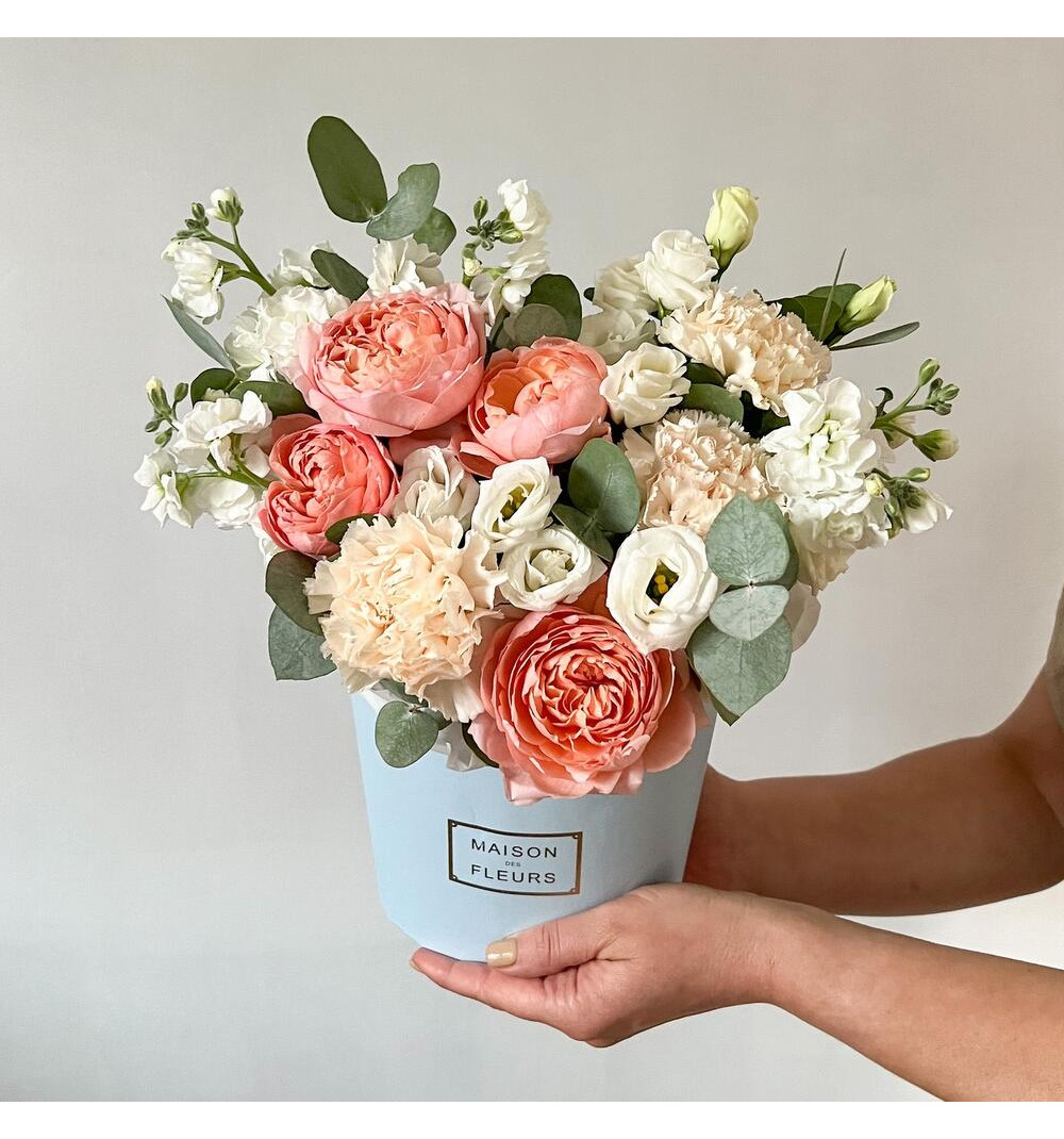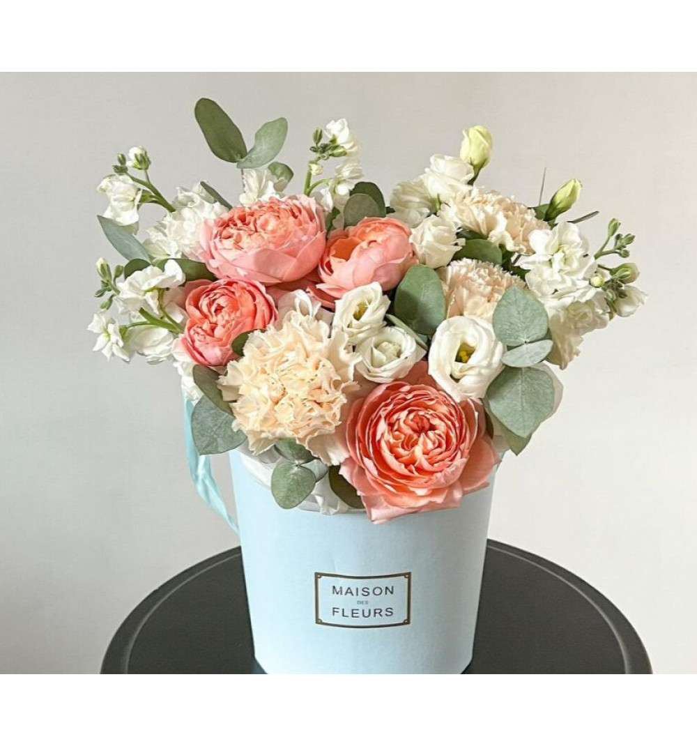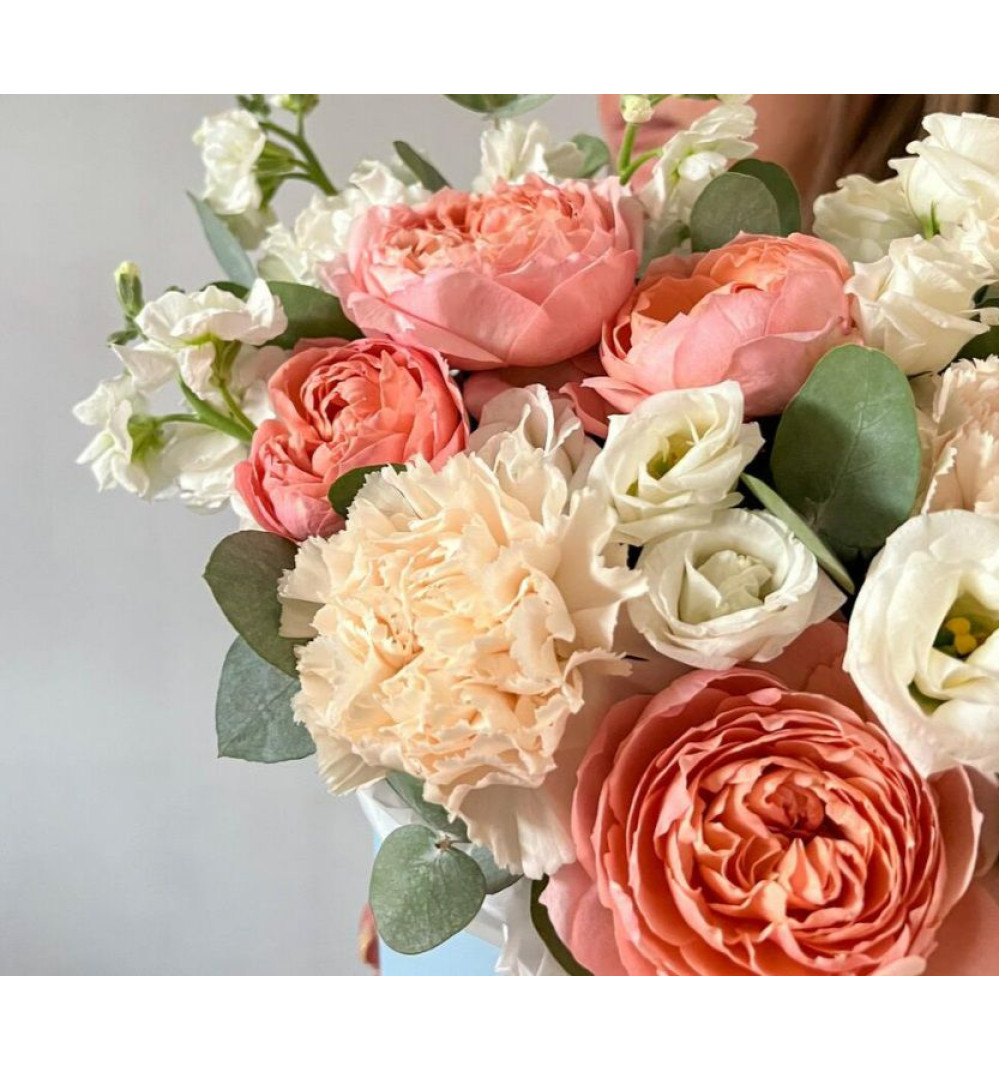 Купить Композиция с персиковыми пионовидными розами и маттиолой. в Алматы за 25 000 ₸ | интернет-магазин «Guls»