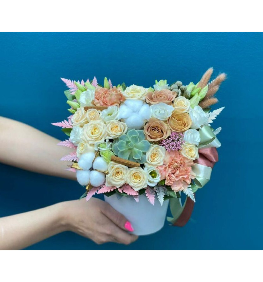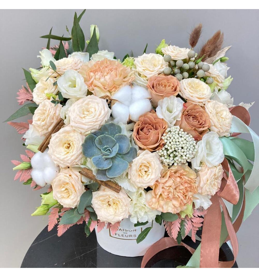 Купить Композиция в коробке «Нежный капучино» в Алматы за 25 000 ₸ | интернет-магазин «Guls»