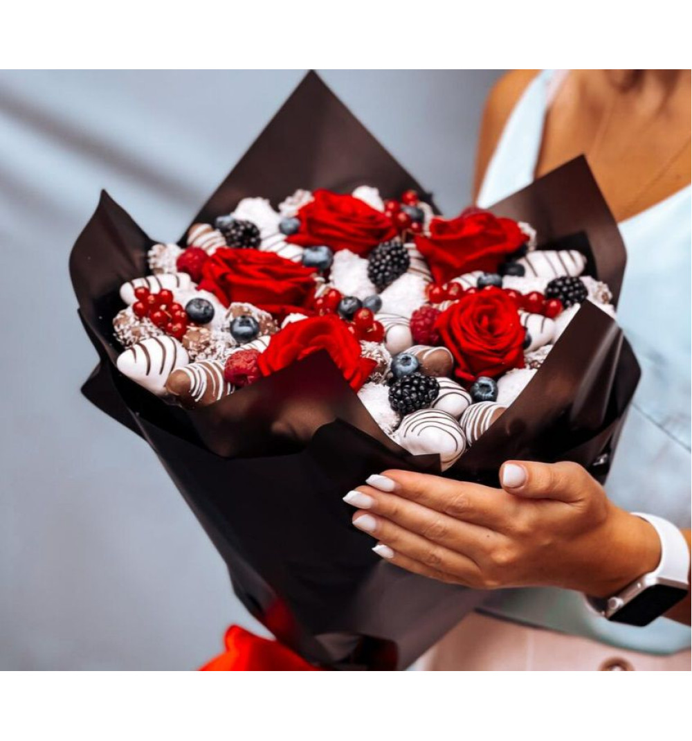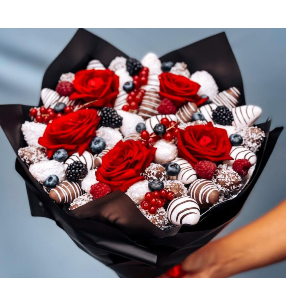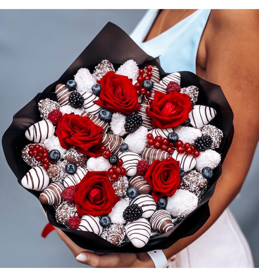 Купить Стильный букет с клубникой в Алматы за 20 000 ₸ | интернет-магазин «Guls»
